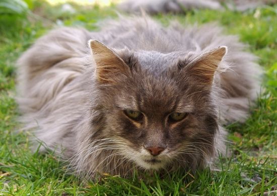 Für sein alter war er noch sehr aktiv hielt das ganze Haus auf Trab. Seine Herkunft war unbekannt. Die Fellkonsistens verriet aber Perservorfahren. Im Alter von ca. 9 Wochen haben wir ihn im Tierheim Friedrichshafen entdeckt. Aus dem Bericht vom Tierheim ging hervor, dass er mit einer Gruppe verwilderter Hauskatzen unterschiedlichen Alters in einer verlassenen Scheune gefunden wurde. Auffällig war, dass er das Einzige blaugetigerte langhaarige Kätzchen in einer Gruppe schwarz-weißer und braun-getigert-weißer kurzhaariger Hauskatzenkinder war. Er war sehr Menschenbezogen und die anhänglichkeit ging so weit, dass er uns lieber auf Ausflügen begleitete, als ohne seine Menschen zu Hause zu sitzen. Gerne war er Empfangskomitee an der Tür wenn jemand von uns nach Hause kam, und unterrichtet auch alle anderen darin. |