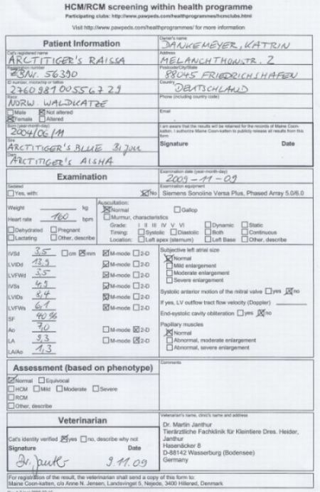 Ultraschalluntersuchung vom 09.11.2009 von Dr. Martin Janthur Tierärztliche Klinik für Kleintiere in Wasserburg (bei Lindau) Ergebnis: