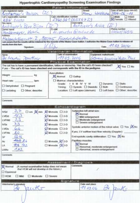 Ultraschalluntersuchung vom 11.09.2006 von Dr. Martin Janthur Tierärztliche Klinik für Kleintiere in Wasserburg (bei Lindau) Ergebnis: