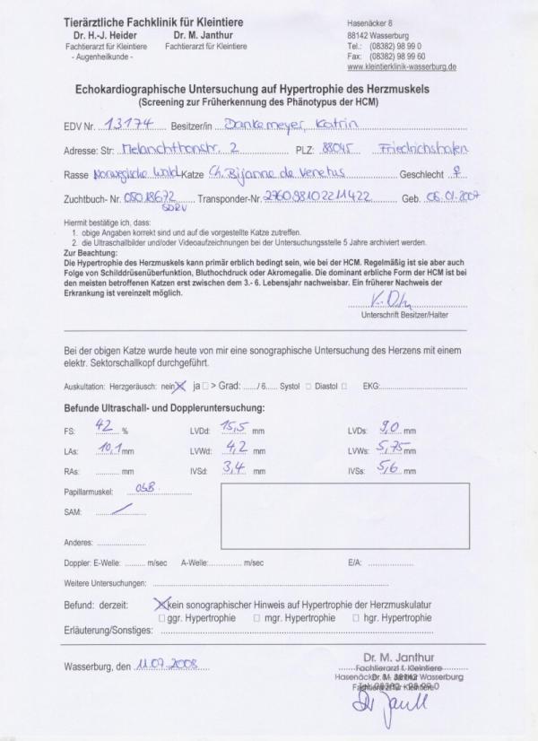 Ultraschalluntersuchung vom 11.07.2008 von Dr. Martin Janthur Tierärztliche Klinik für Kleintiere in Wasserburg (bei Lindau) Ergebnis: