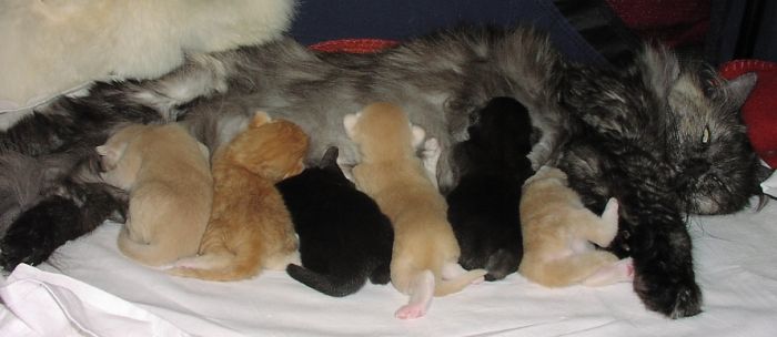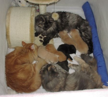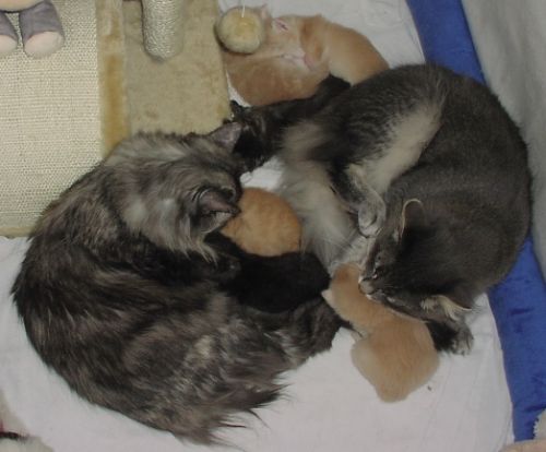 Elora Danan hilft Mama Bijanne bei der Kittenpflege